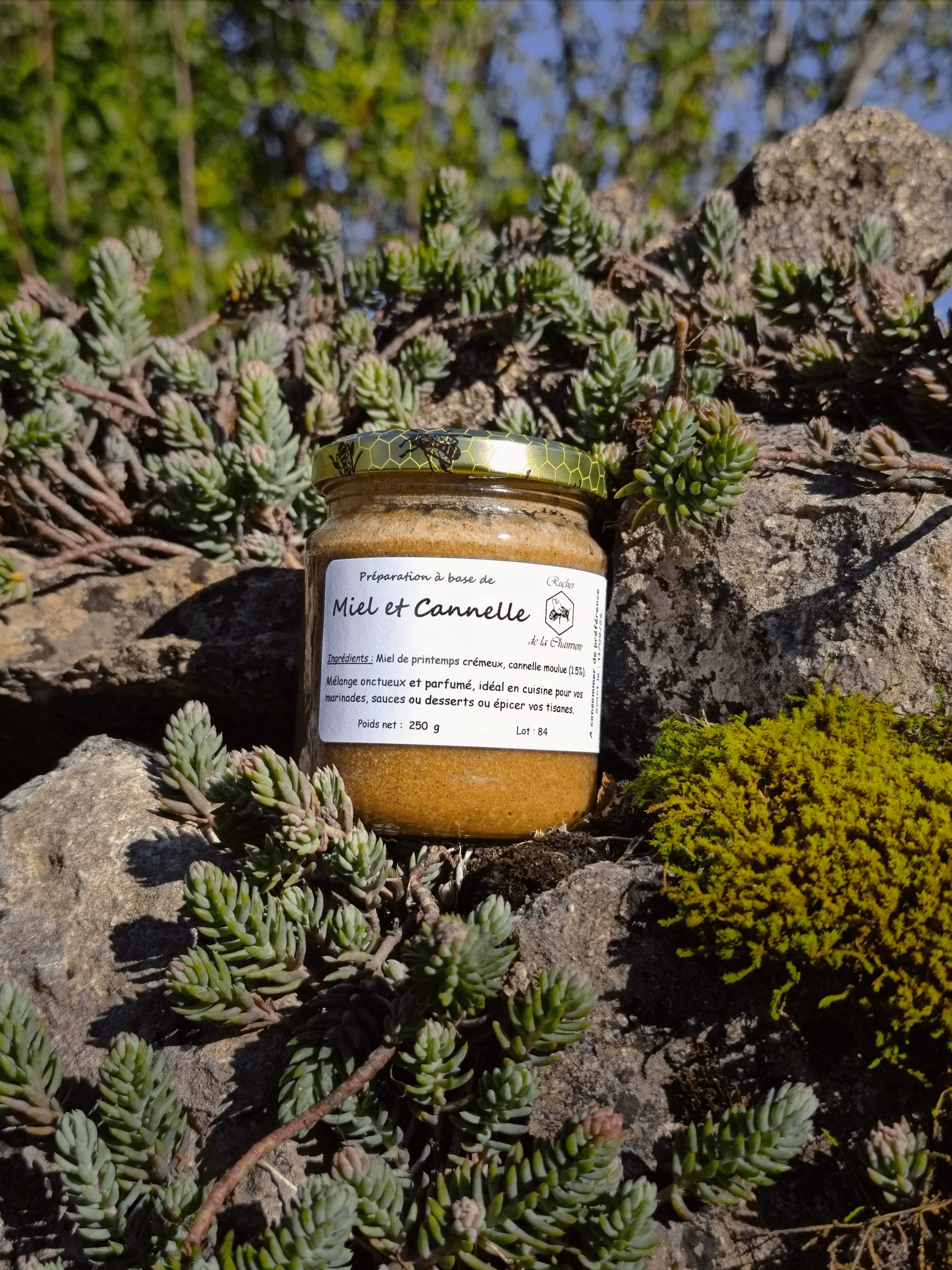Composition : Miel de printemps, cannelle en poudre.